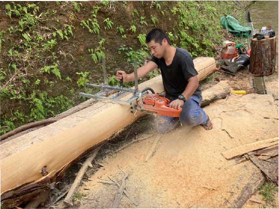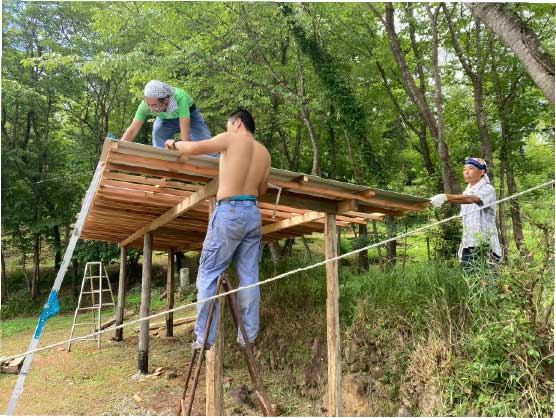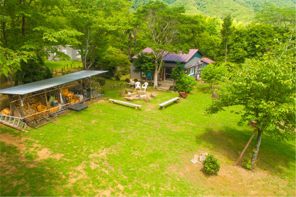| 2022 | 2022年までの4年をかけ、自分達の木材を使い、自分達の手で家屋の修繕、リノベーションを行う。 2022年7月 旅館業許可 取得。 焚き火の宿 ノキロをオープンする。 現在も家屋、土地、山林部の整備は継続中。 |